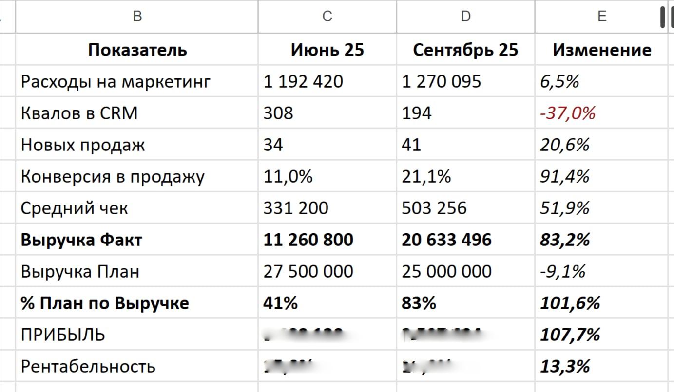 4. Собственник получил полную ясность: Продажи получают качественные лиды и должны продавать им с плановой конверсией в сделку. Никакого футбола.